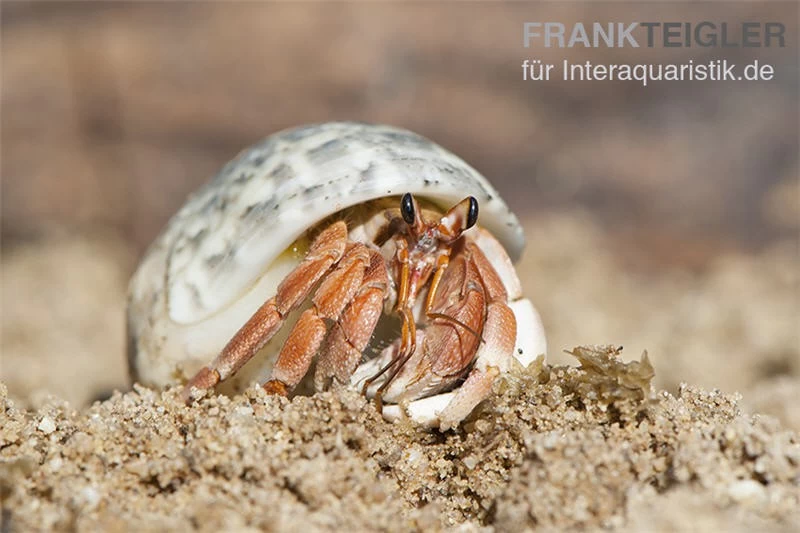 Der Landeinsiedlerkrebs, lat. Coenobita spec., ist ein absolut friedlicher, interessanter und robuster Einsiedlerkrebs. Der sehr variabel gefärbte Landeinsiedlerkrebs besitzt ein ausgeprägtes Sozialverhalten, daher ist die Haltung in einer kleinen Gruppe anzuraten. Landeinsiedlerkrebse sind sehr anspruchslos und dankbar. Sie zeigen meist ein aktives Verhalten und begeistern durch ihr freundliches Aussehen und ihre Zutraulichkeit. Nach einiger Zeit werden Ihnen die putzigen Gesellen meist sogar aus der Hand fressen. Teilweise sind Coenobita spec. aber auch dämmerungs- und nachtaktiv, daher sollte man nicht beunruhigt sein, wenn es den Krebsen tagsüber manchmal an Tatendrang mangelt. Die hier angebotenen Tiere zeigen sich bei uns aber durchaus auch am Tage aktiv. Sie bestellen hier einen zufälligen Mix von Tieren, welche Art bei Ihnen genau enthalten ist können wir nicht vorhersagen, es können auch unbestimmte Tiere enthalten sein.