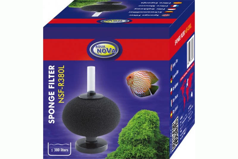 Luftbetriebener Innenfilter für das Aquarium in modernem Design. Der Aqua Nova NSF-R380 ist ein runder Schwammfilter und ausreichend für Becken bis 380 Liter Inhalt. Durch die Form ist eine platzsparende Unterbringung im Aquarium möglich, der schwere Standfuss hält ihn an Ort und Stelle. Dieser Filter arbeitet nach dem Prinzip des Hamburger Mattenfilters.
