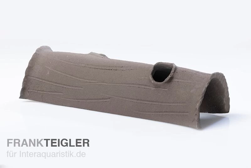 Der halbrunde Tontunnel aus dem Hause Aquariumkeramik ist ein optimaler Unterschlupf für Axolotl. Er ist durchgängig geöffnet und verfügt sogar über 2 weitere kleinere Öffnungen an den Seiten (Bullaugen). Besagte Öffnungen eignen sich wunderbar für die Befestigung von Moosen oder anderweitigen Aquarienpflanzen. Der Tunnel selbst ist 30 cm lang, 8 cm breit und 8 cm hoch. Die kleineren Öffnungen sind zirka 3,5 cm groß.