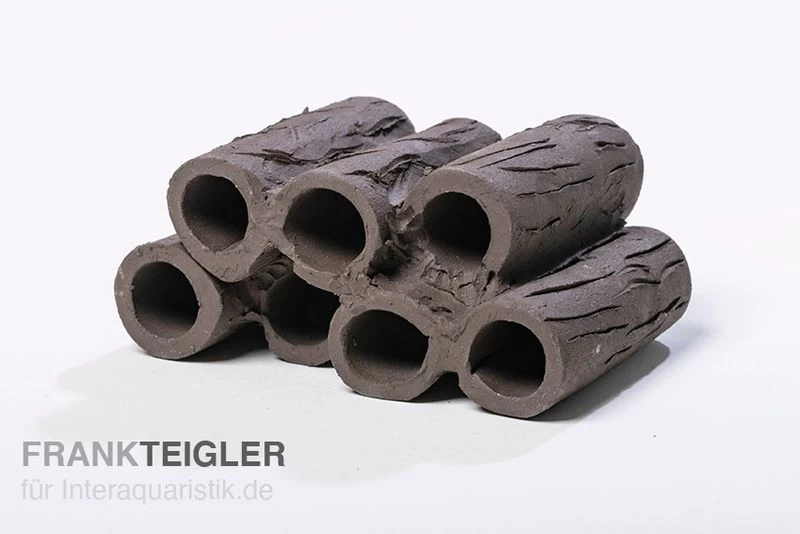 Der tönerne Röhrenturm aus dem Hause Aquariumkeramik ist aus 7 Röhren gefertigt. Eine jede der gebrannten Röhren verfügt über eine Länge und ungefähr 6 – 7 cm bei einem Durchmesser von zirka 1,5 cm. Bei der Herstellung wurde ein sogenanntes Schlickverfahren angewandt, was die zusätzliche Verwendung von Klebstoff unnötig macht.