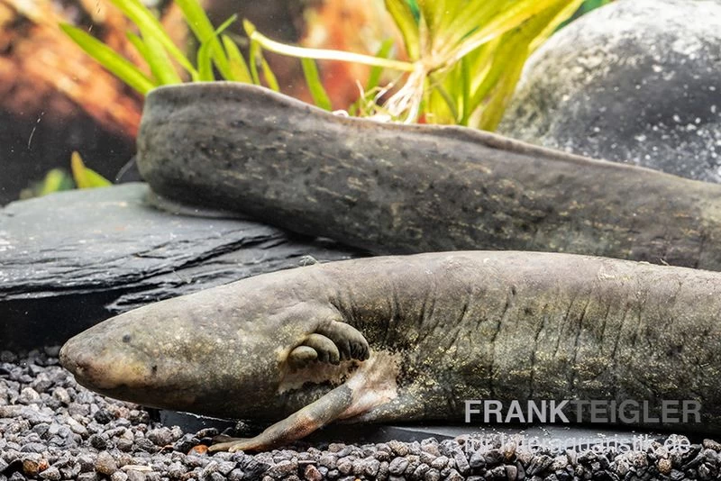 Große Armmolche leben rein aquatisch. Sie können im Aquarium auf eine Endgröße von 98 cm heranwachsen. Das Becken sollte über eine Kantenlänge von 200 cm verfügen. Ein zusätzlicher Landteil ist nicht erforderlich.