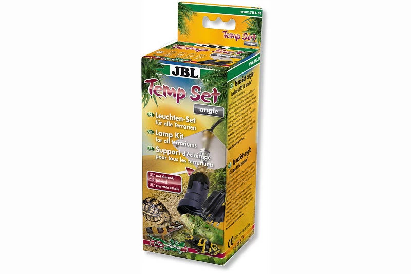 Fast alle Terrarientiere sind wechselwarme Tiere die stark auf das Licht und die dadurch produzierte Wärme, insbesondere aber auch auf die Qualität und Intensität des Lichts, angewiesen sind. Die Aktivität, Nahrungsaufnahme, sowie die Verdauung oder Ruhephasen werden durch den Wechsel von Tag und Nacht starkt beeinflusst. Je nach Lichtquelle gibt es Unterschiede in der Ausbeute und der Qualität des Lichts. Einige Lampen liefern „einfach nur Licht“, andere Lampen spenden Licht und Wärme, einige versorgen die Tiere mit lebenswichtigem UV-Licht, wieder andere sind reine Wärmelampen. Für alle Lampentypen ist das JBL TempSet geeignet, vorausgesetzt, die Lampe verfügt über eine E27-Fassung und wird nicht wärmer als 270 Grad Celsius. Durch ein zusätzlich vorhandenes Kugelgelenk ist die Ausrichtung der Lampe individuell möglich.