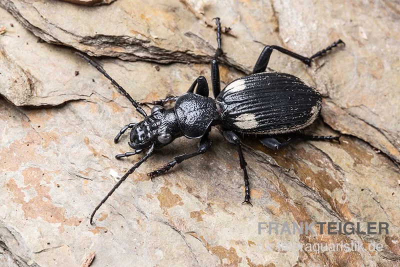 - Der Zweifleck-Laufkäfer (Anthia omoplata) stammt aus verschiedenen Teilen Afrikas.